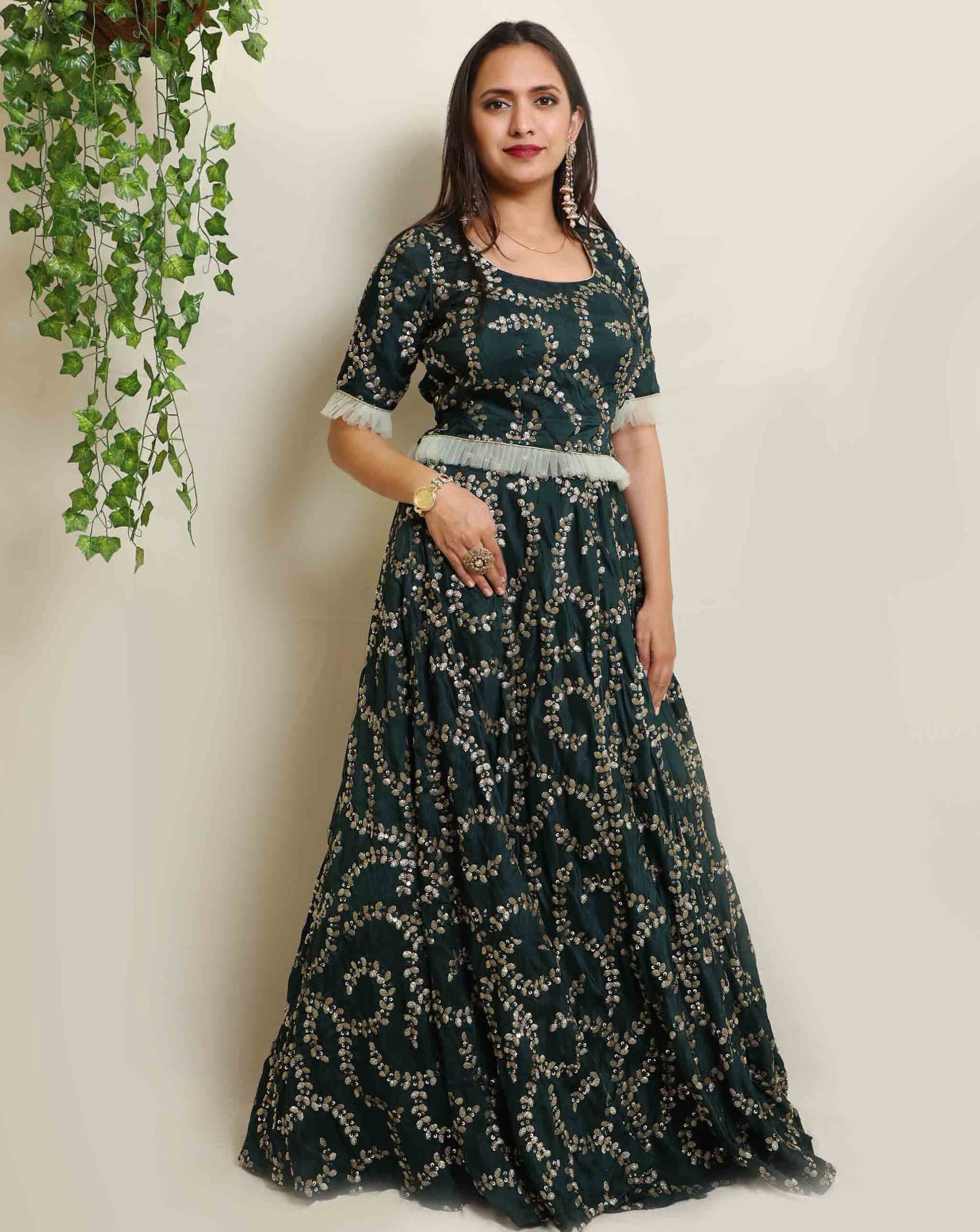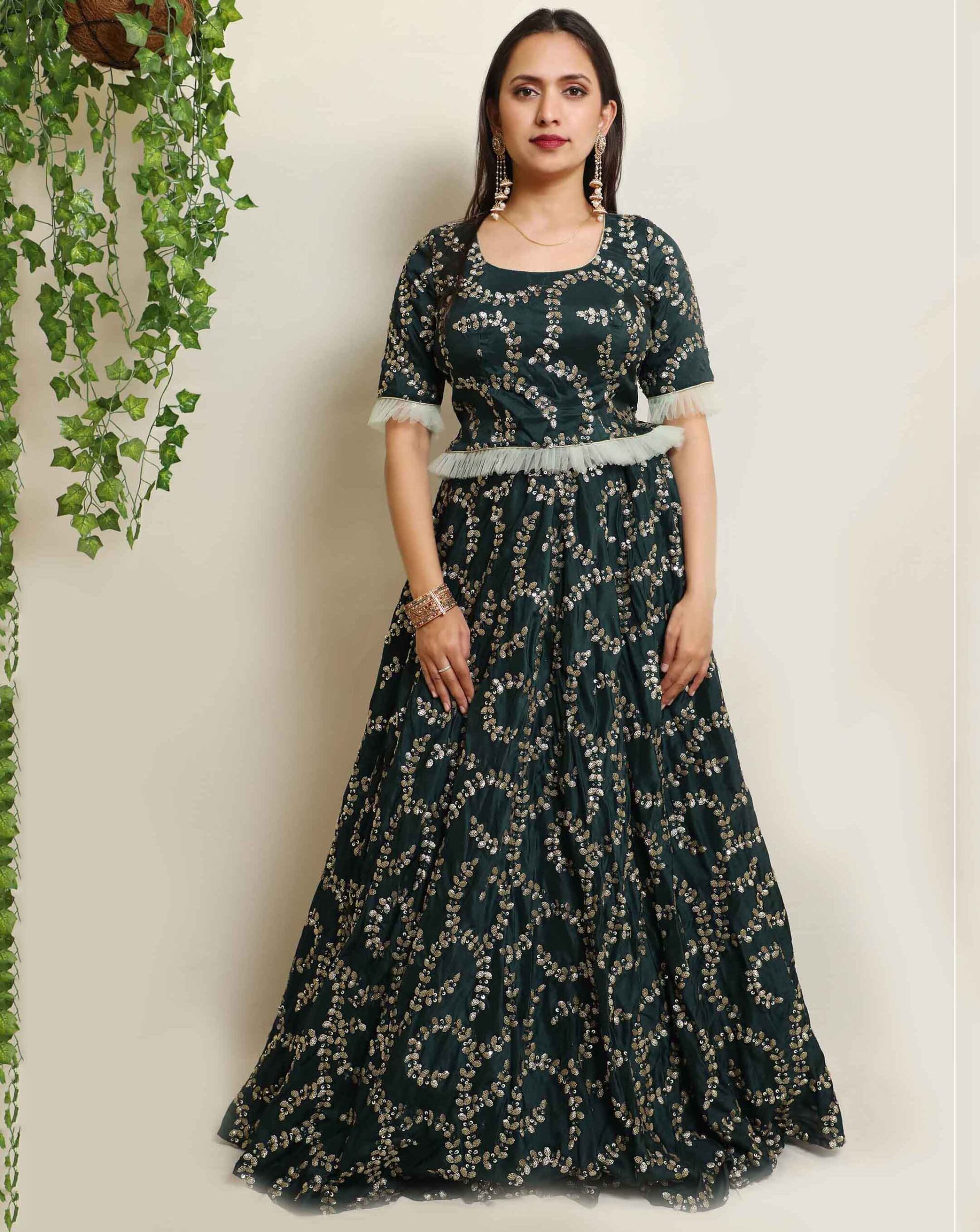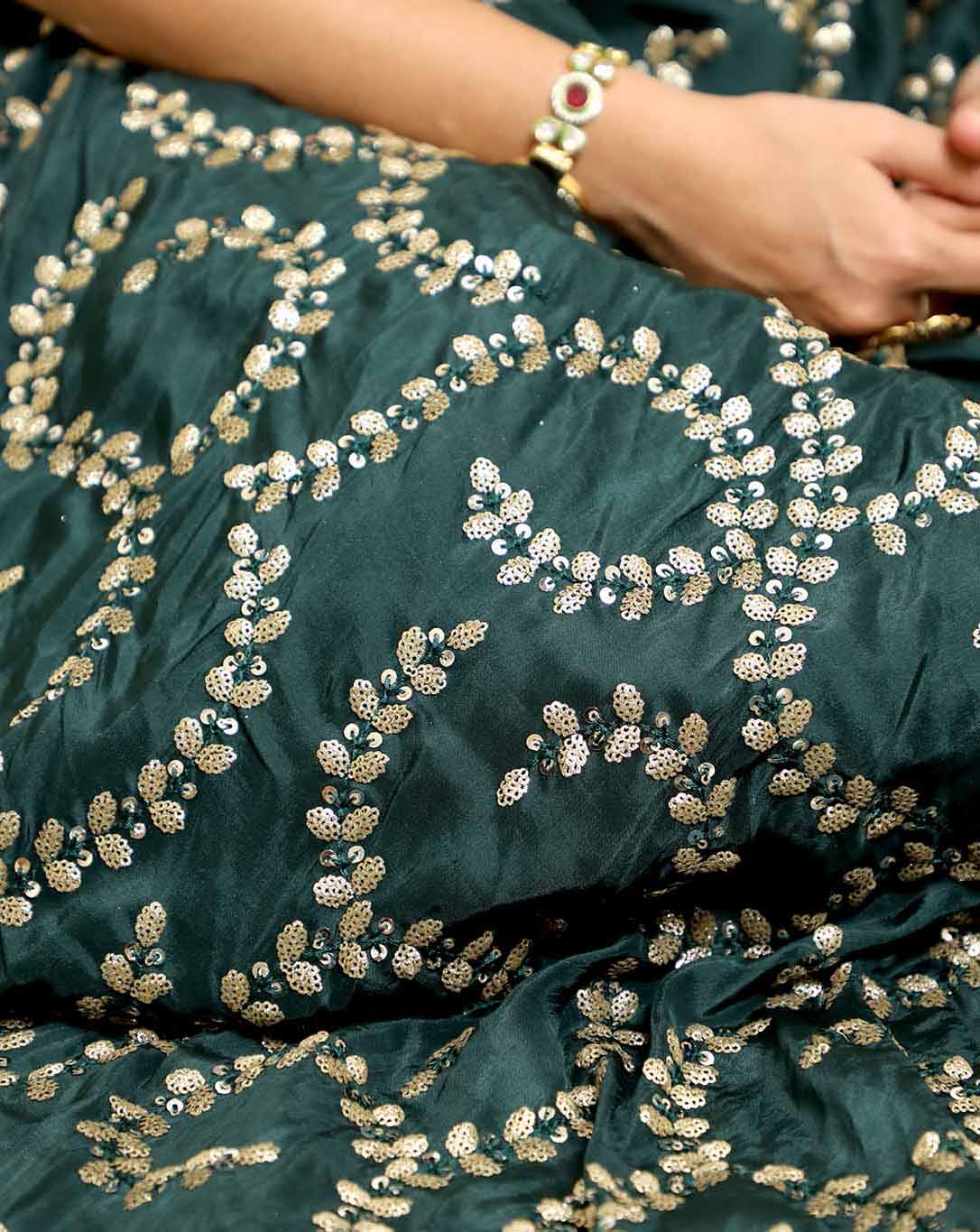 A woman wearing Green Sequin LehengaManjari – Green Sequin Lehenga Set