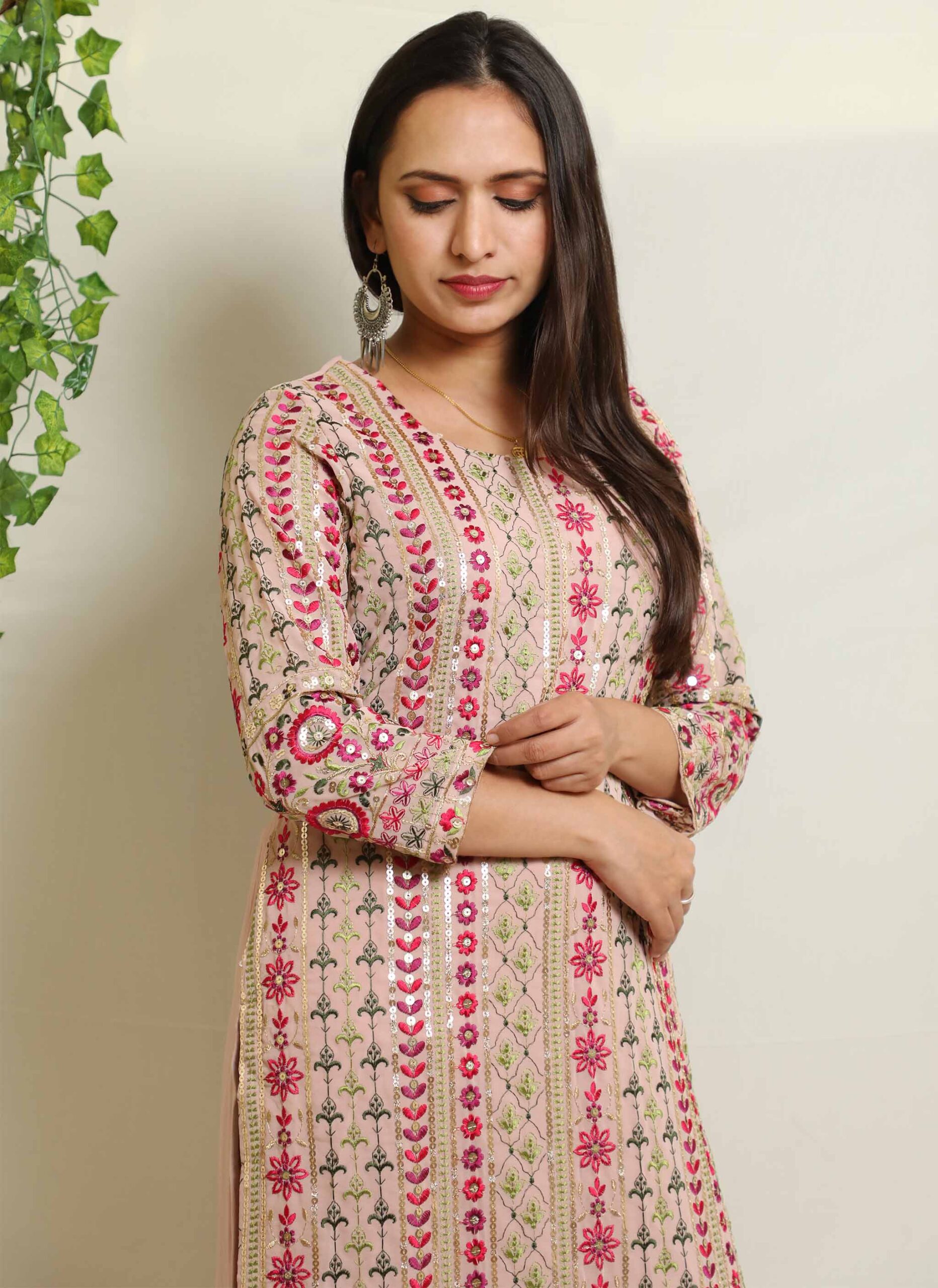 Pink Embroidered Poly Georgette KurtiManjari – Pink Embroidered Poly Georgette Kurti