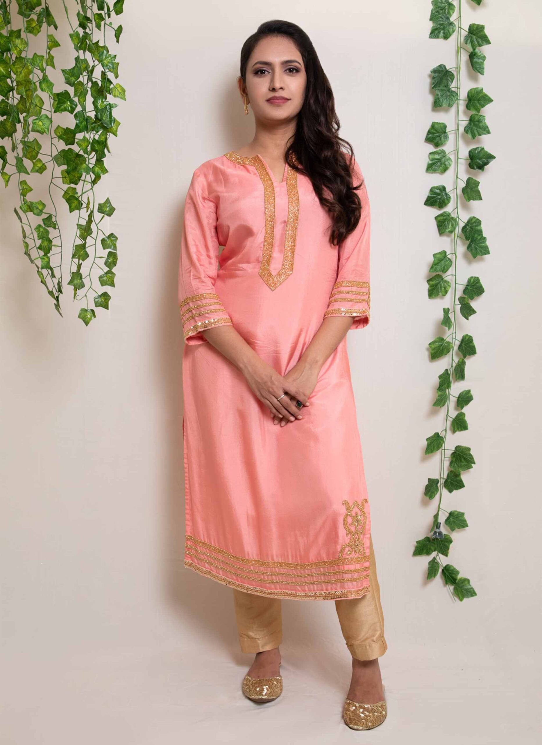 Pink Modal Satin Handwork KurtiManjari – Pink Modal Satin Handwork Kurti