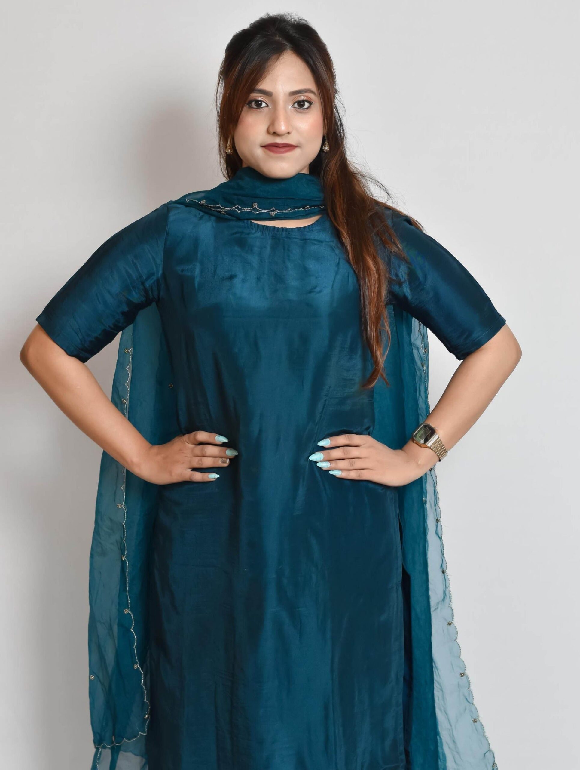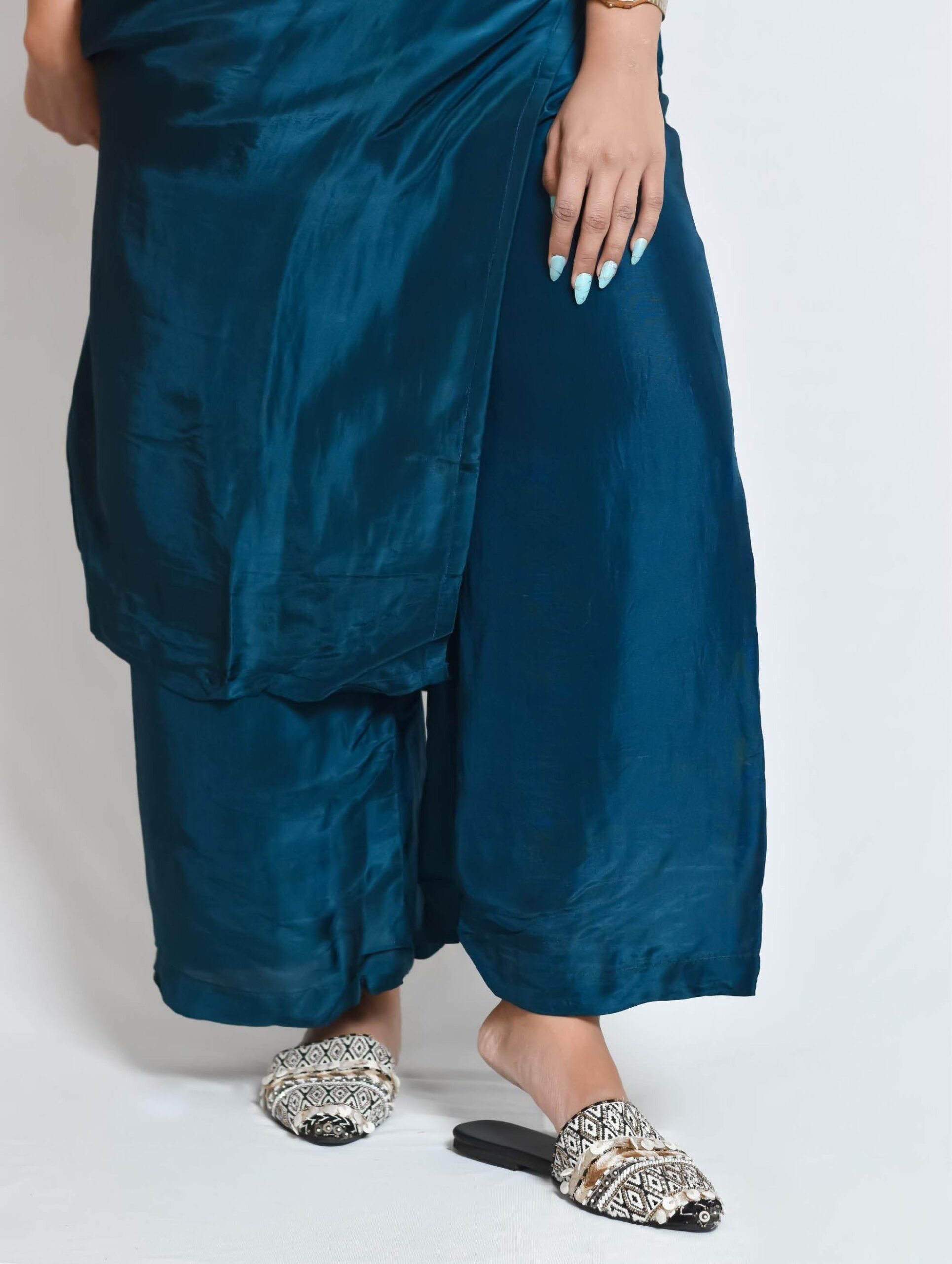 German Blue Upada Silk Palazzo SetPehrawa – German Blue Upada Silk Palazzo Set without Dupatta