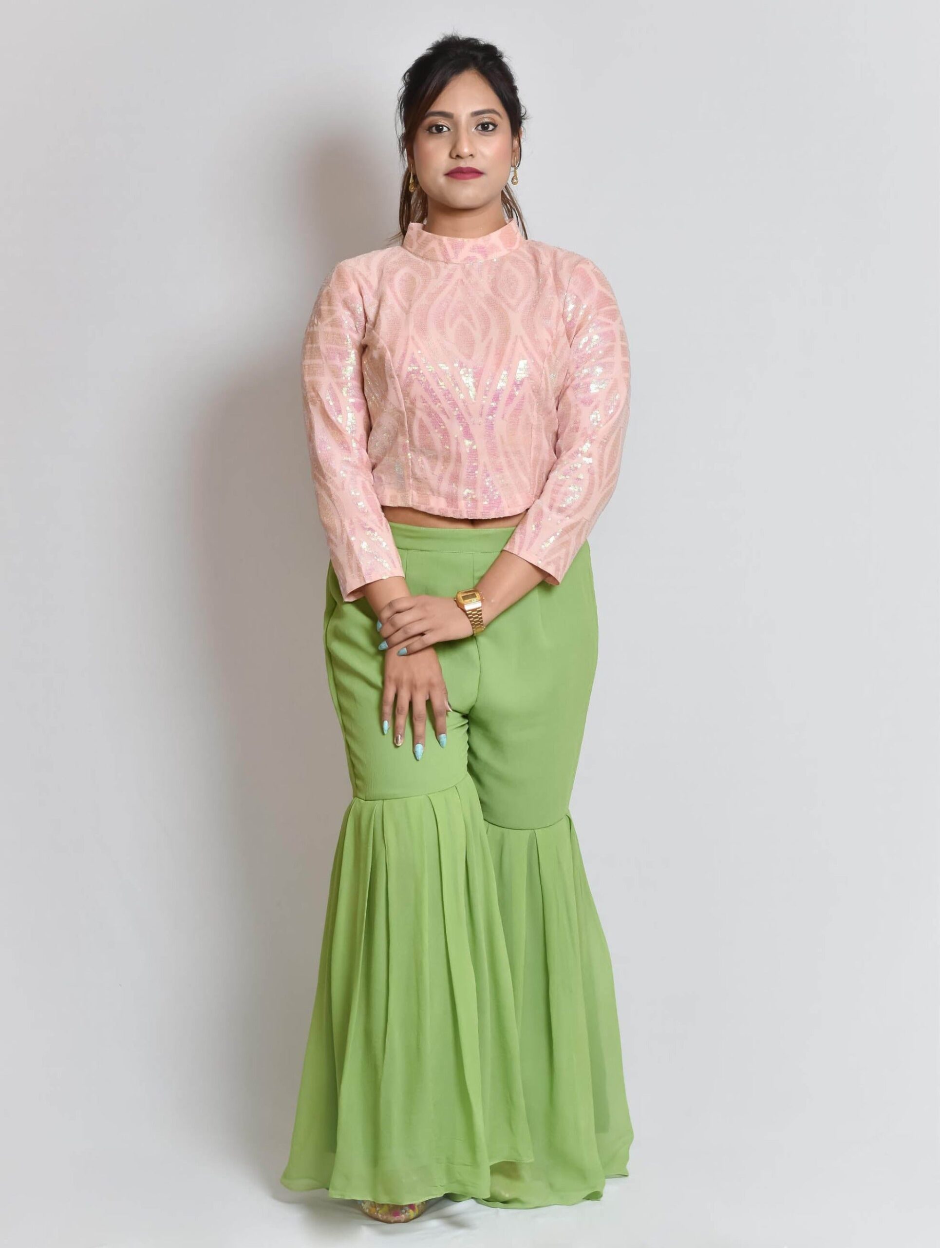 Pehrawa – Pink Sequin Georgette Blouse