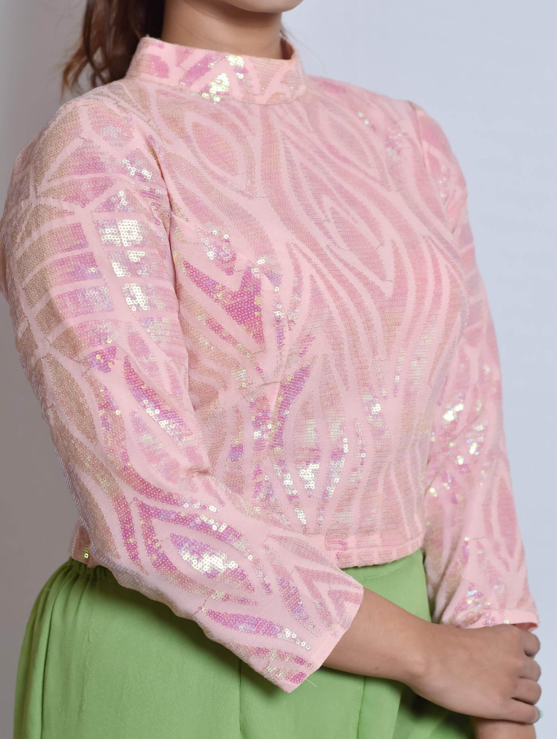Pink Sequin Georgette BlousePehrawa – Pink Sequin Georgette Blouse