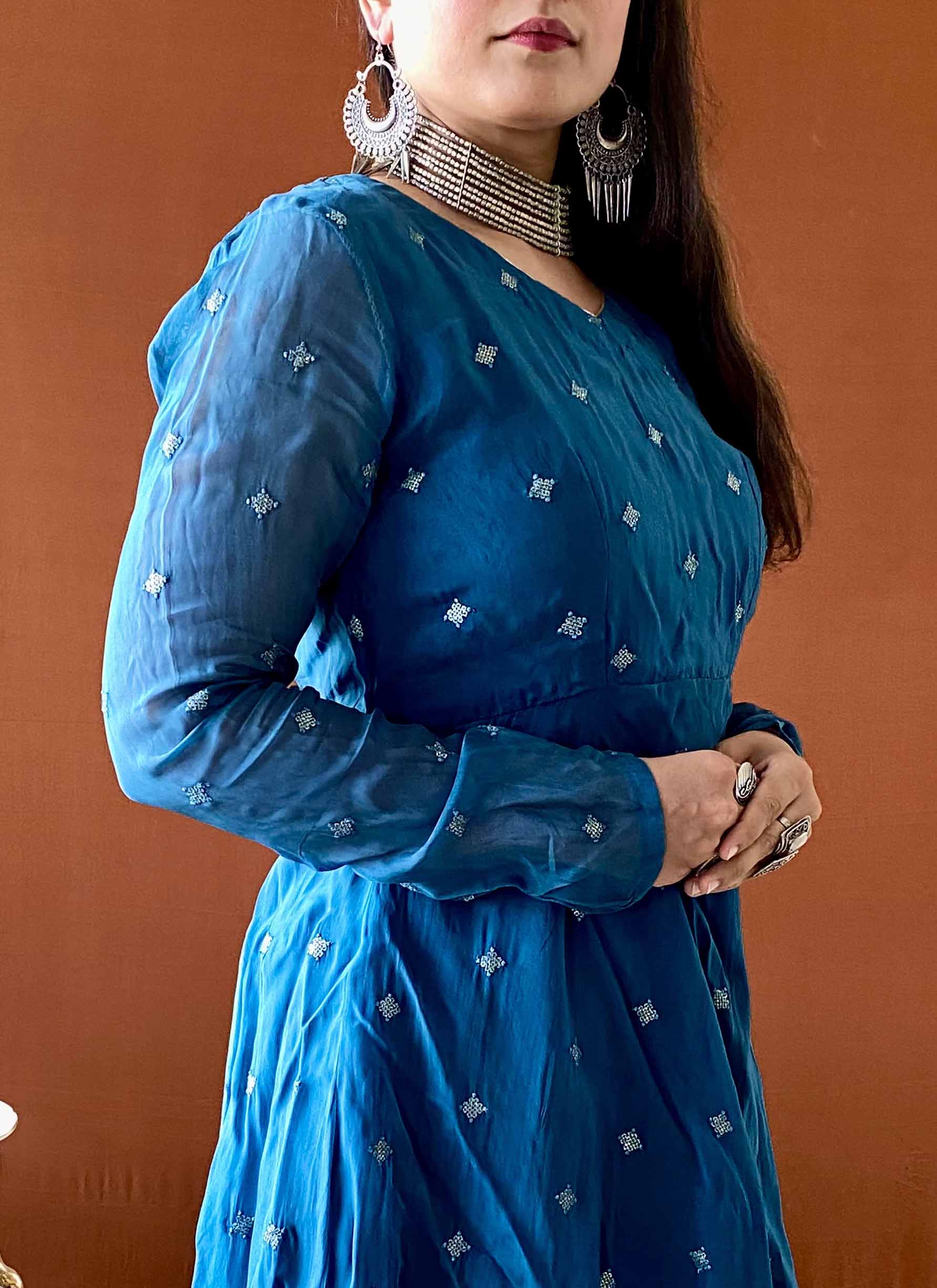 Riwaayat ~ Blue Anarkali Suit Set for Women – Traditional Festive Outfit