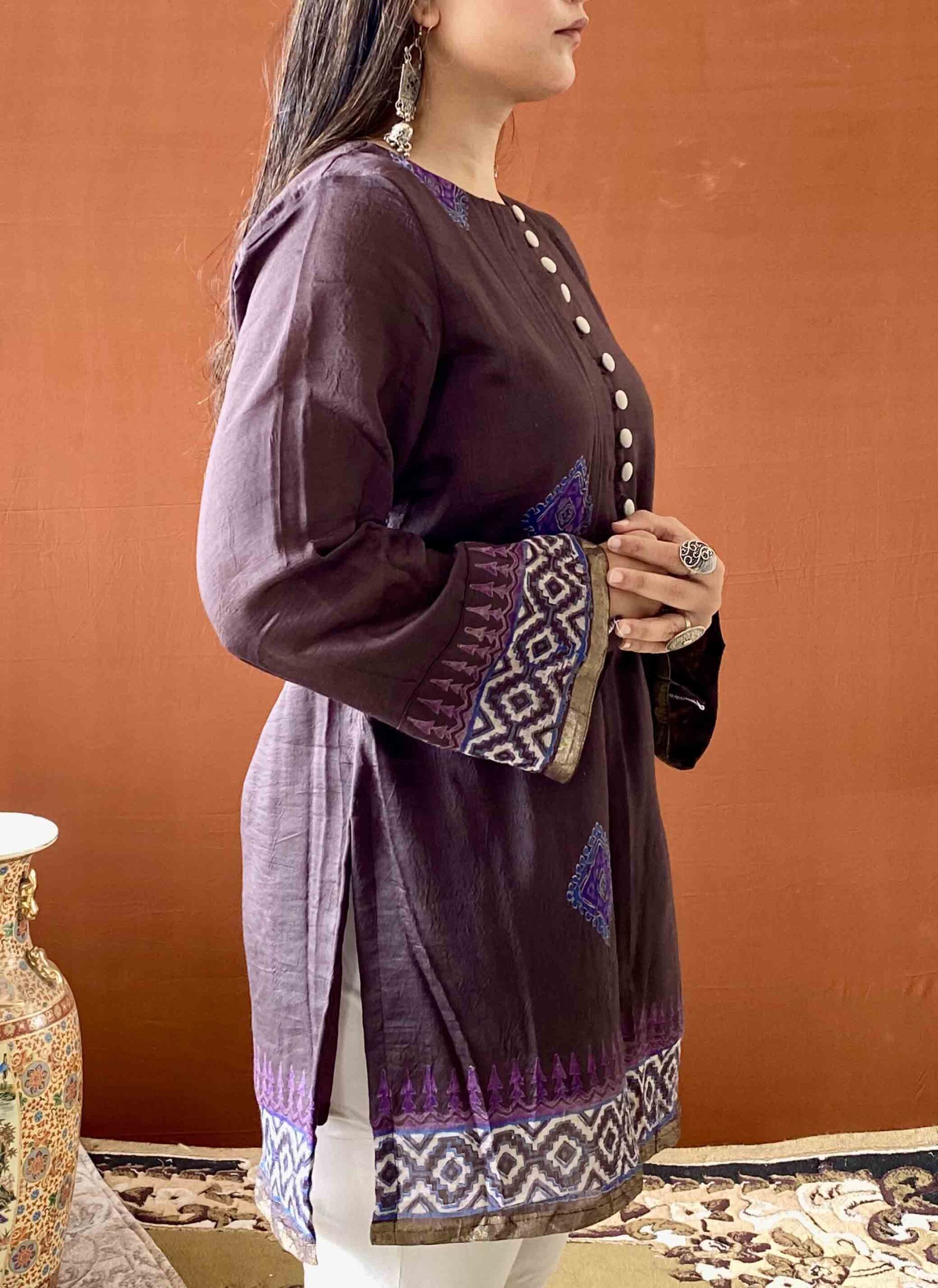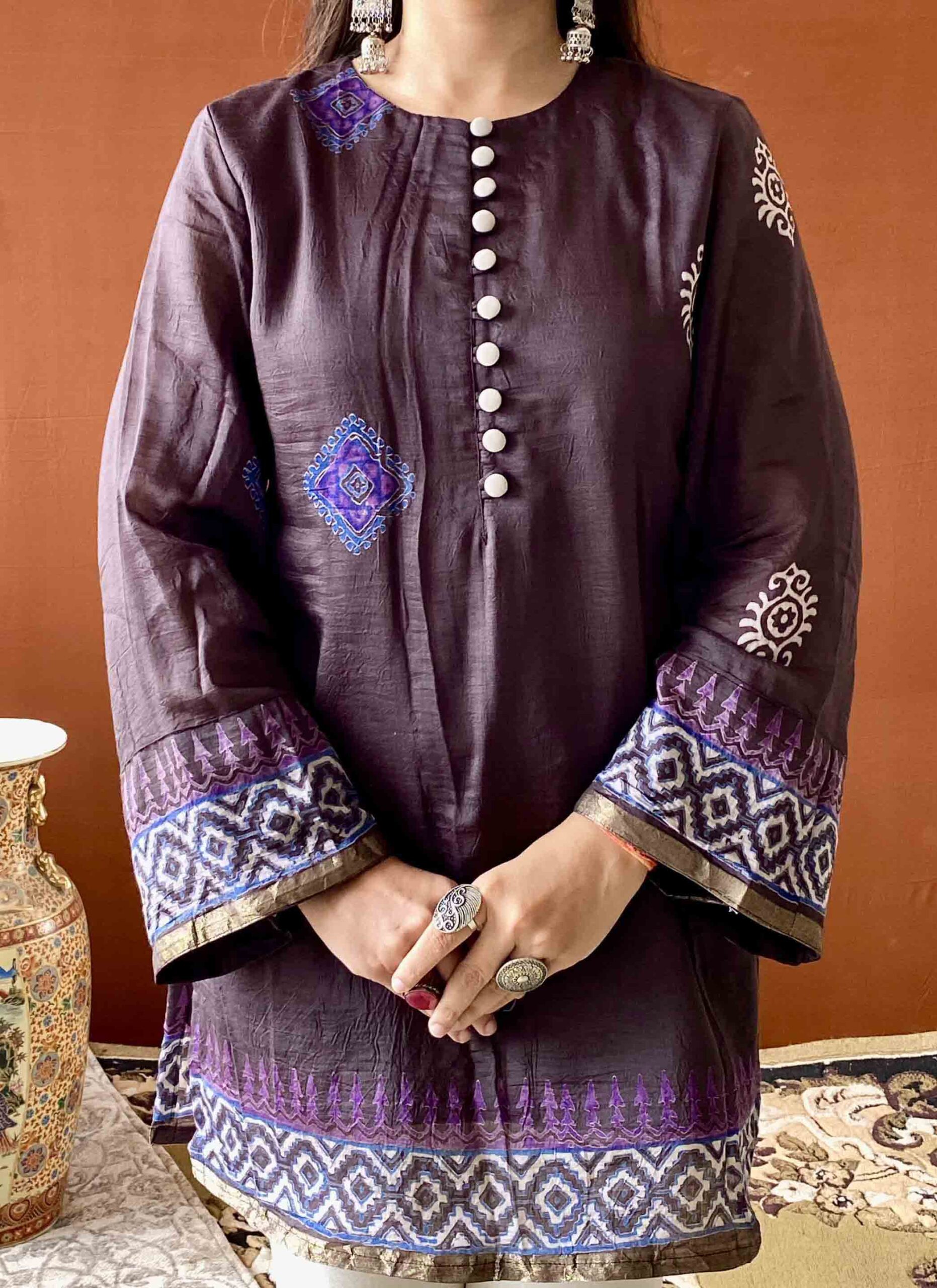 Saumya – Brown Mulmul Cotton Short Kurti for Women