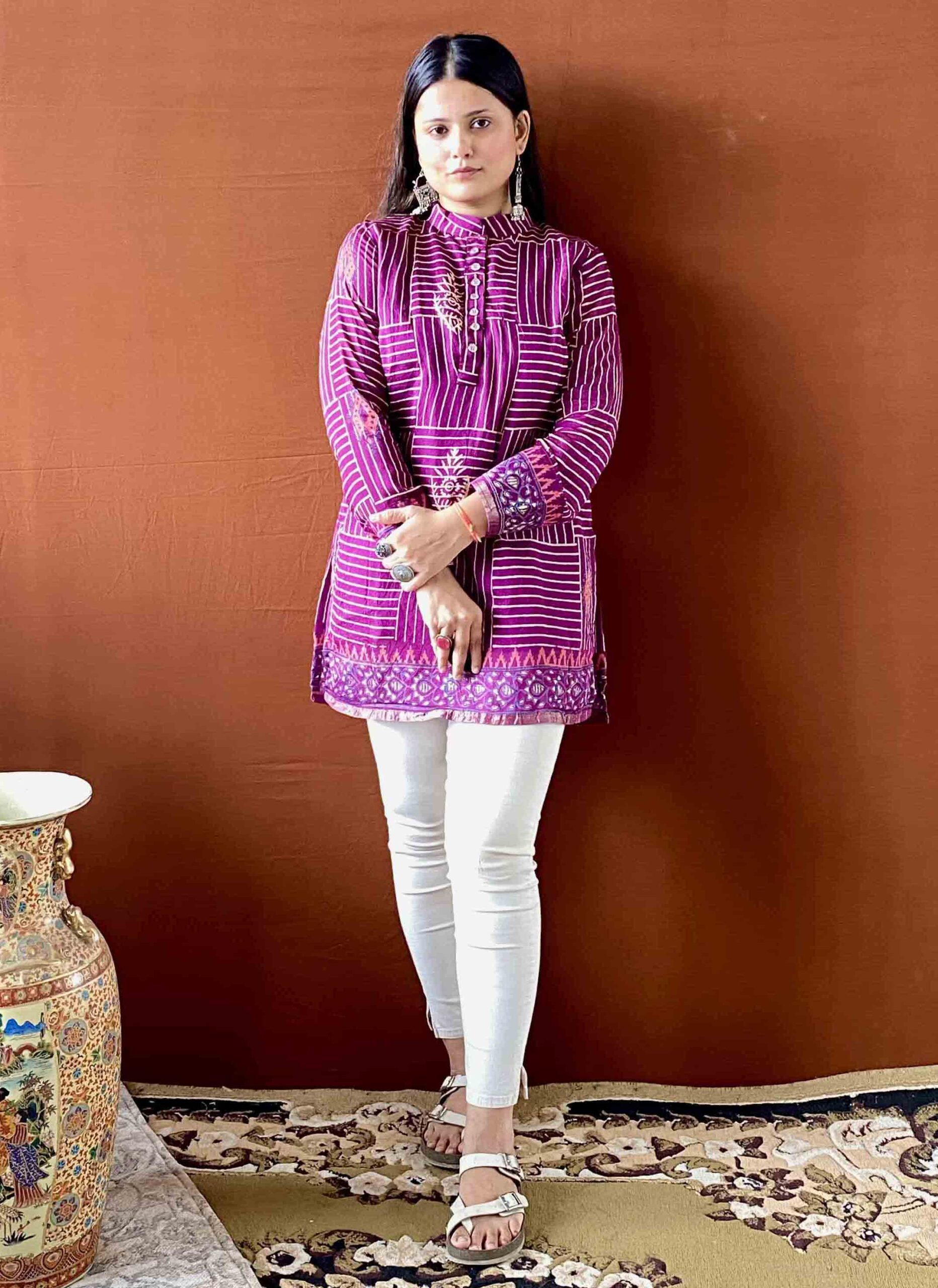 saumya purple mulmul casual wear short kurti for womenSaumya – Purple Mulmul Casual Wear Short Kurti for Women