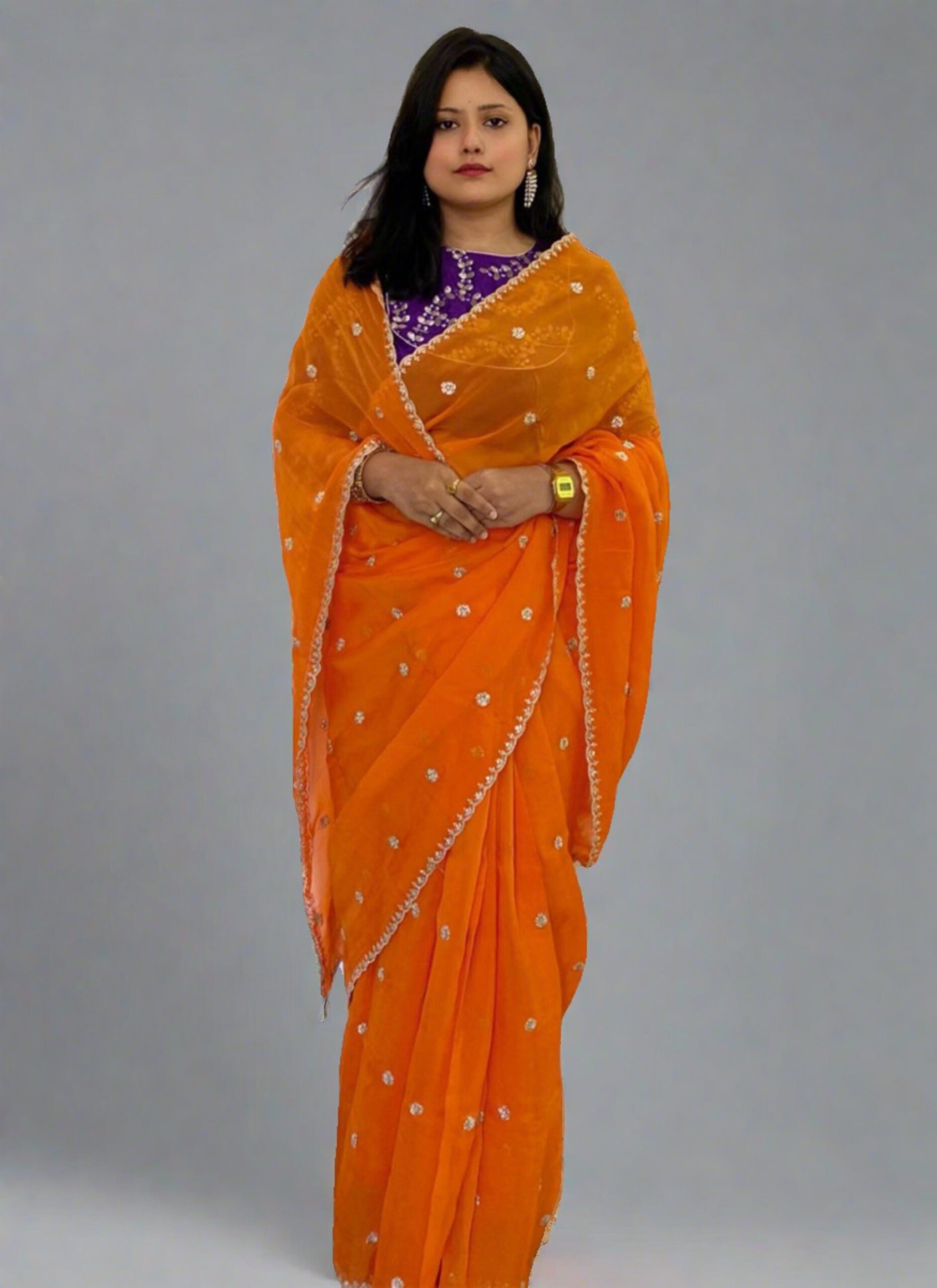 Orange Georgette Organza Wedding SareeSoundarya – Orange Georgette Organza Wedding Saree