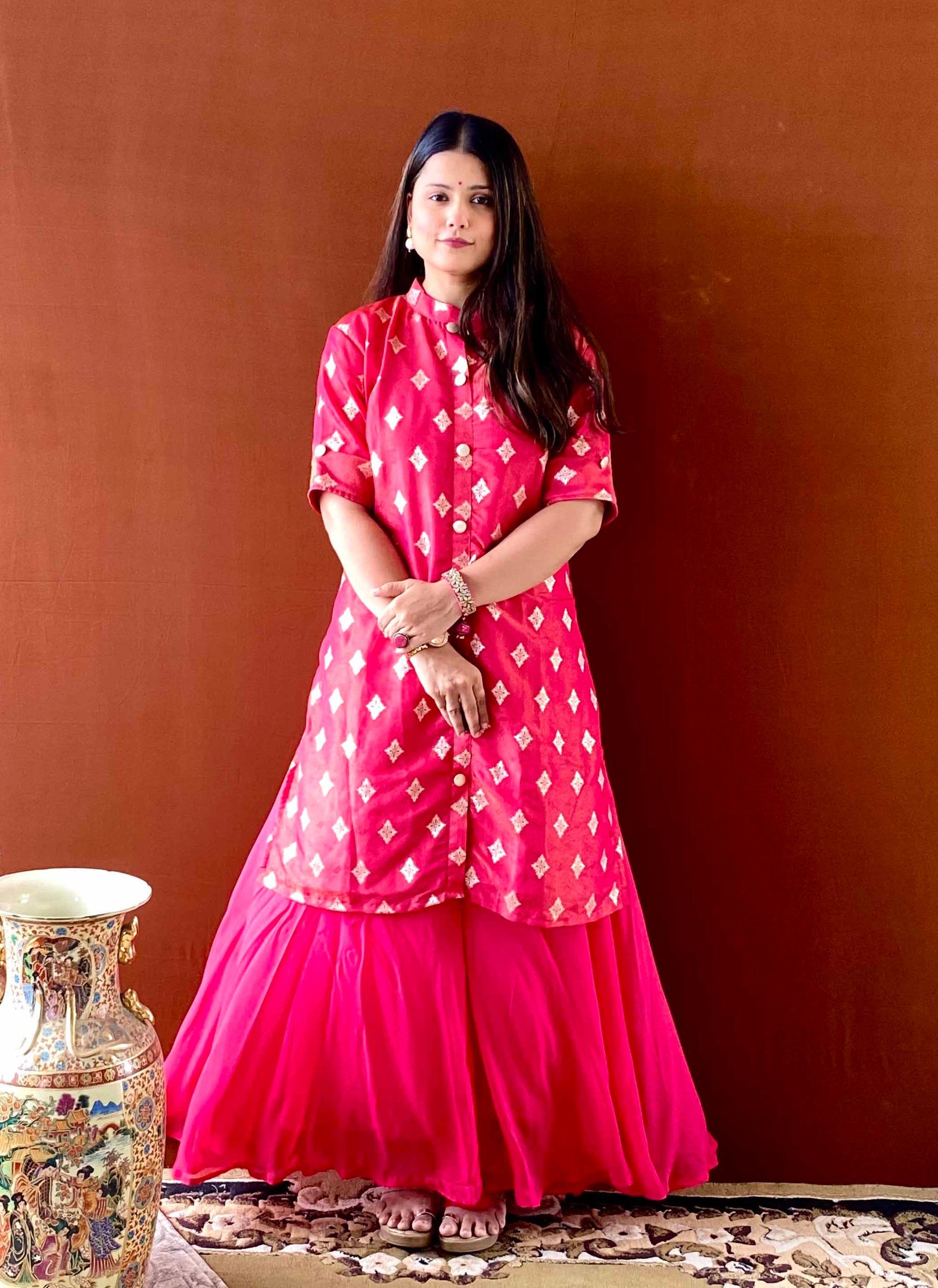 Riwaayat ~ Pink Banarasi Kurta & Palazzo Set – Festive Ethnic Co-ord for Women